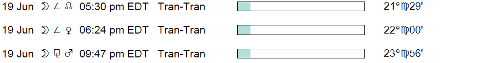 **Conjunctions to Select Fixed Stars on June 19, 2018.**
