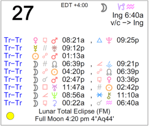 | Moon | 27° Capricorn 21' 10" |