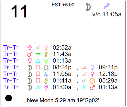 - A New Moon occurs in the sign of Sagittarius at 5:29 AM today.