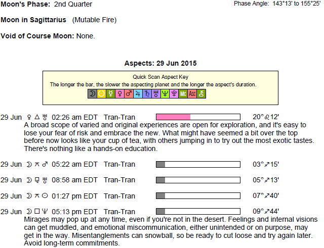 - The Moon is in Sagittarius all day (until Wednesday, July 1st, at 5:10 AM).