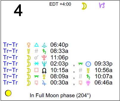 The following aspects (major only) and positions are at noon (EDT) on June 4th: