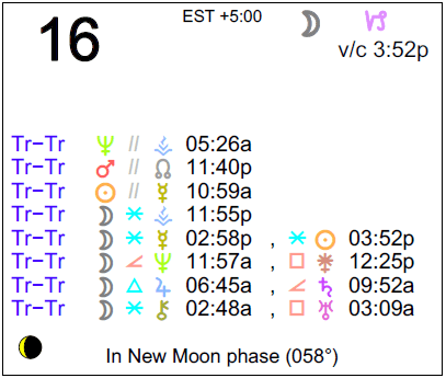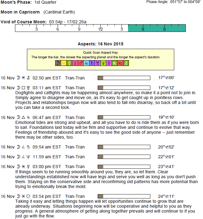 The following aspects (major only) and positions are at noon (EST) on November 16th: