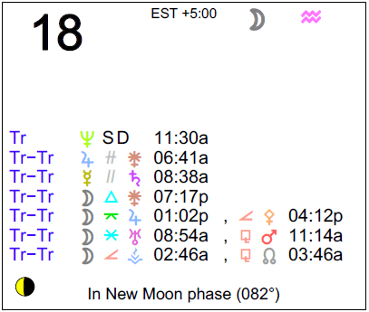 The following aspects (major only) and positions are at noon (EST) on November 18th: