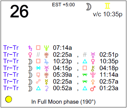 If you’re astrologically inclined and interested in the details of the Astrology of today, here are some of the factors considered in the forecasts (for the astrology of the week, see This Week in Astrology):