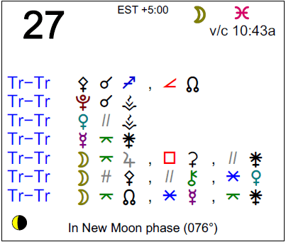 - The Moon is void from 10:43 AM forward (until tomorrow at 1:35 AM).