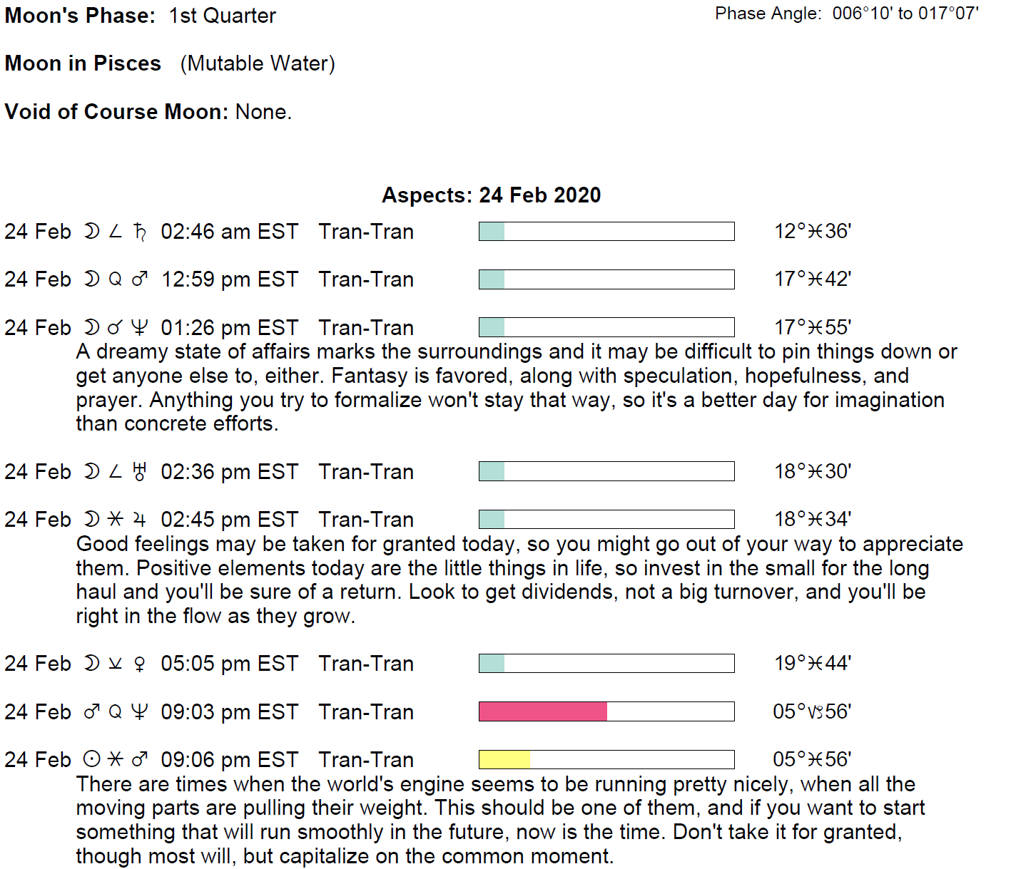 If you’re astrologically inclined and interested in the details of the Astrology of today, here are some of the factors considered in the forecasts: