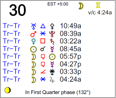 - The Moon is void from 4:24 AM EST forward (until 2:08 AM tomorrow).