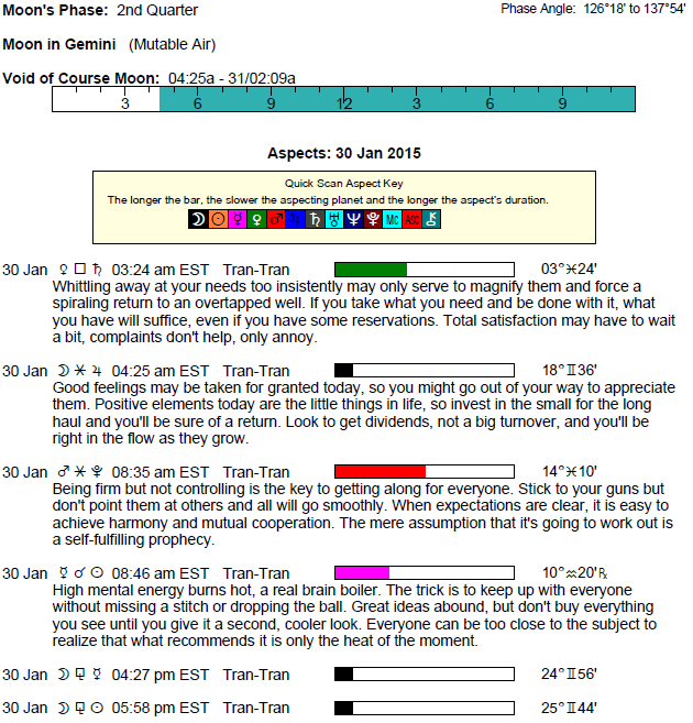 The following aspects (major only) and positions are at noon (EST) on January 30th: