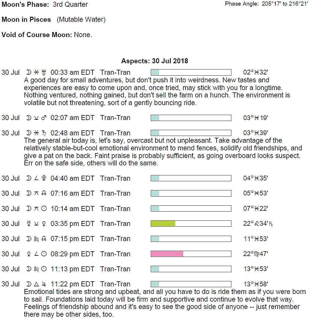 **Conjunctions to Select Fixed Stars on July 30, 2018.**