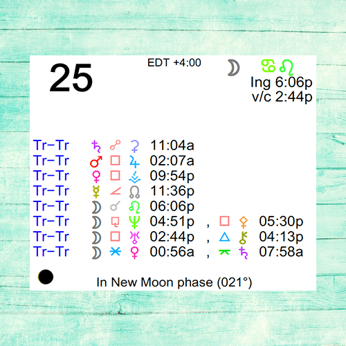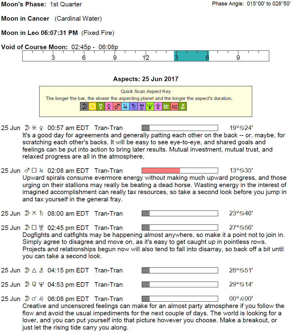 The following aspects (major only) and positions are at noon (EDT) on June 25th: