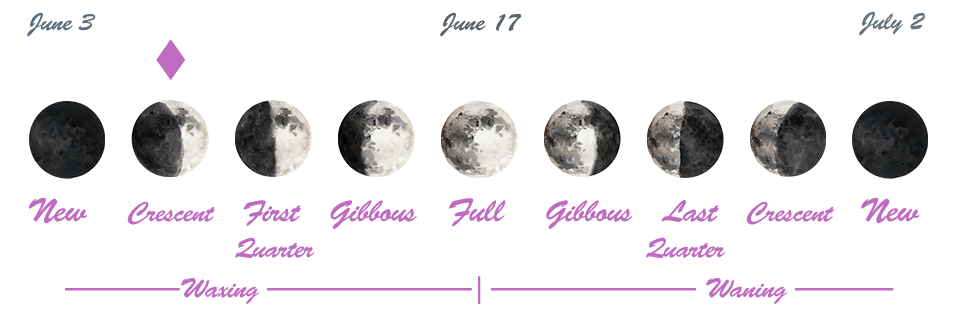 - The New Moon occurred on the 3rd in the sign of Gemini. The First Quarter Moon will happen on the 10th.