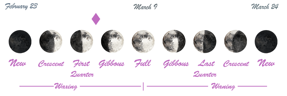 - The First Quarter Moon occurred on the 2nd, and the Full Moon will happen on the 9th.