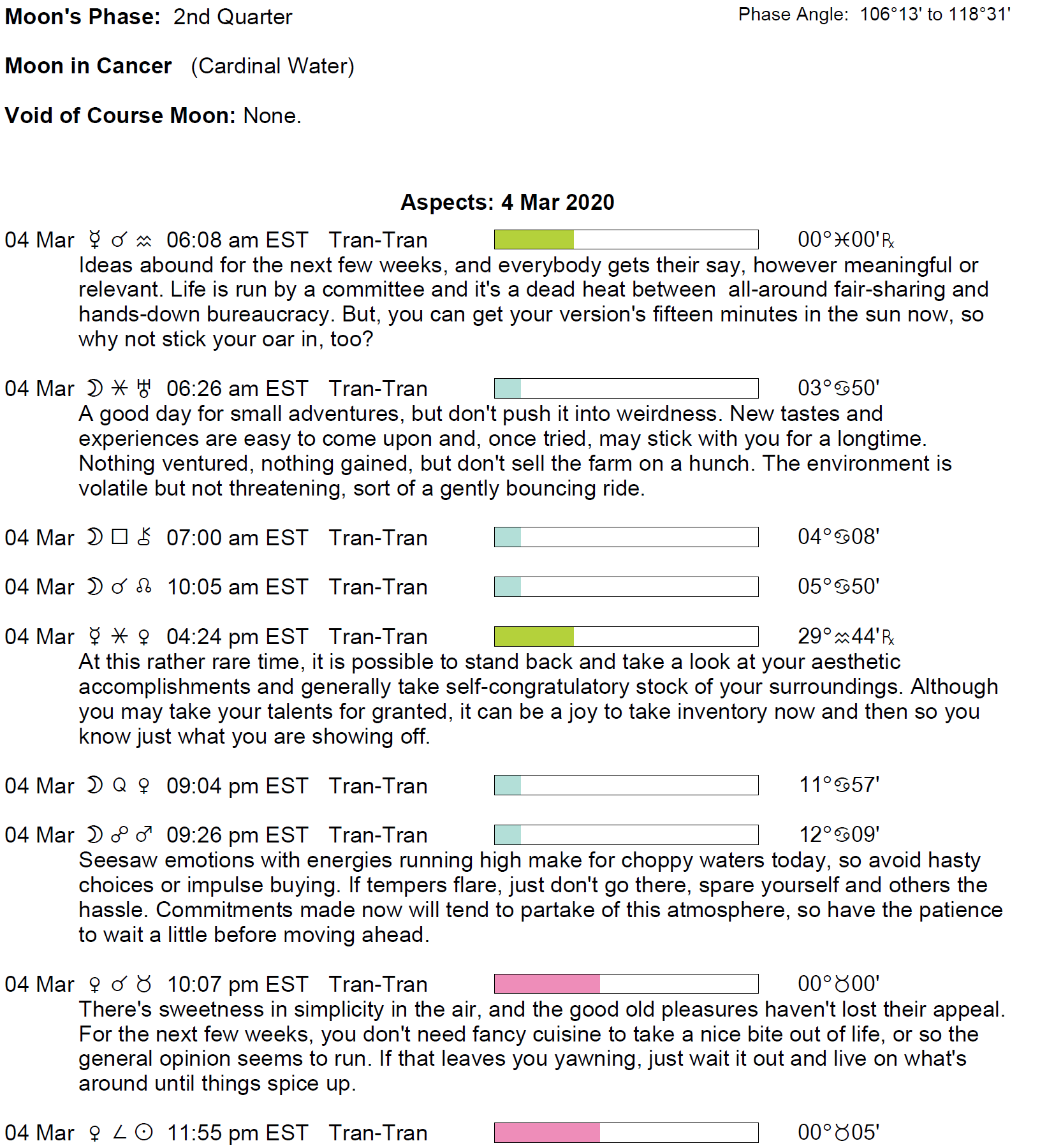 If you’re astrologically inclined and interested in the details of the Astrology of today, here are some of the factors considered in the forecasts: