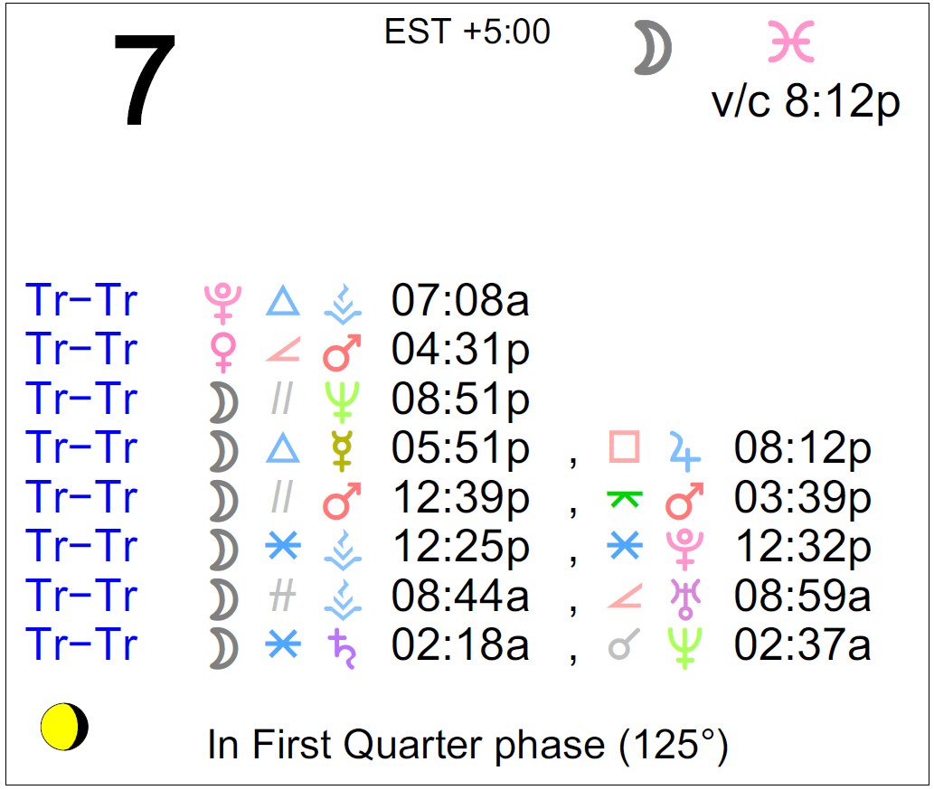 - The void Moon occurs from 8:12 PM forward (until tomorrow at 6:48 AM).