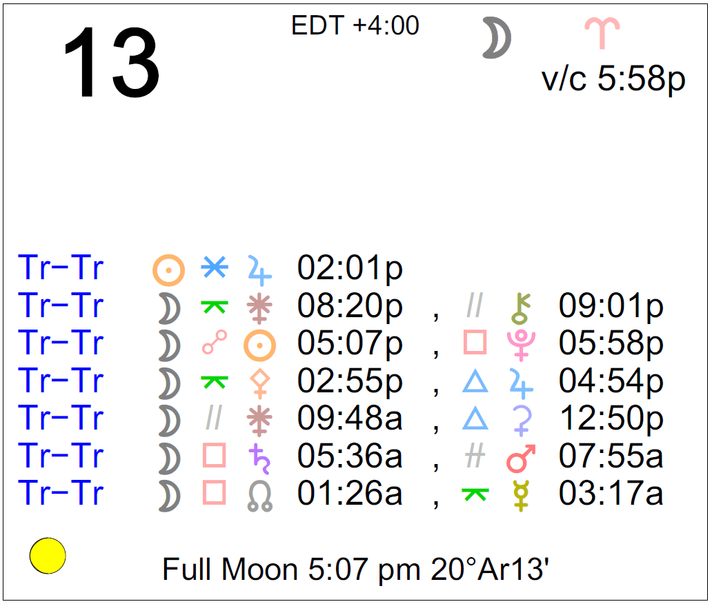 - The Full Moon occurs today at 5:58 PM in the sign of Aries.