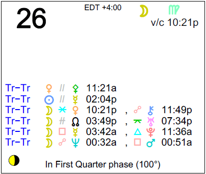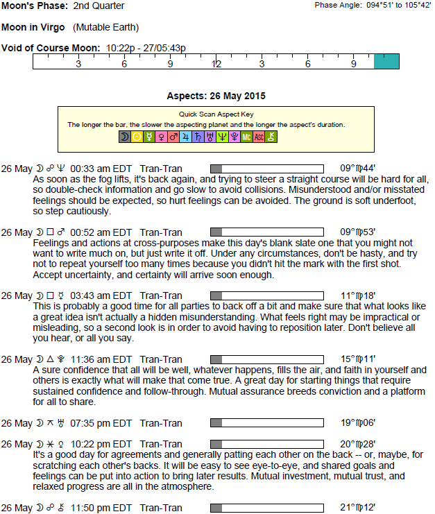 The following aspects (major only) and positions are at noon (EDT) on May 26th: