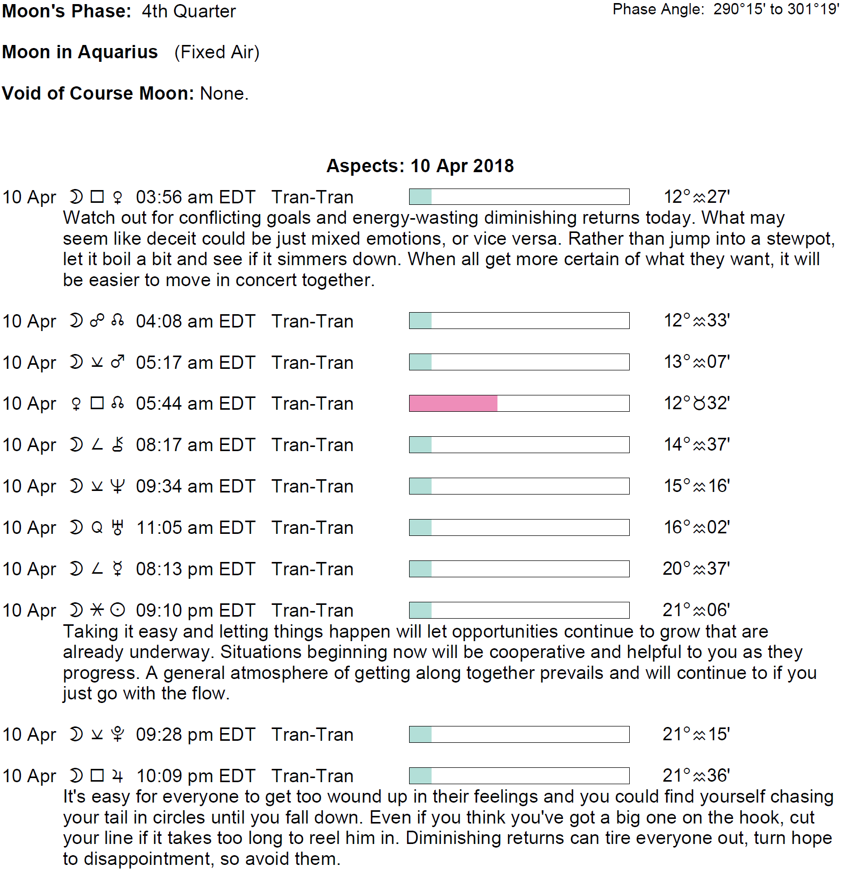 **Conjunctions to Select Fixed Stars on April 10, 2018.**