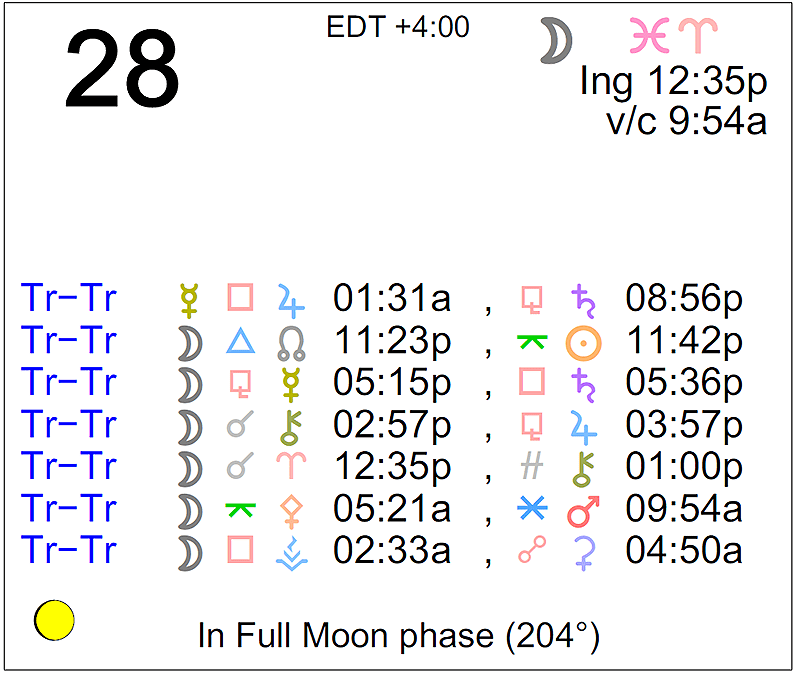 - The Moon is in Pisces until 12:35 PM, after which the Moon is in Aries.