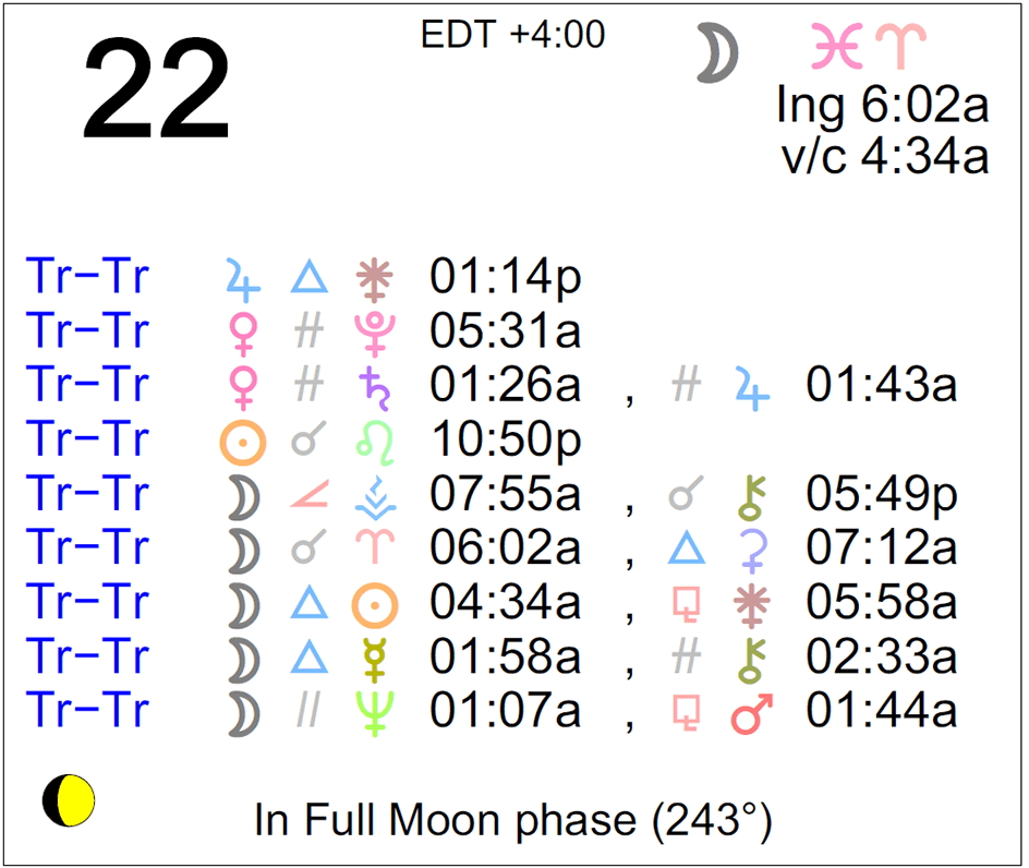 - The Moon is in Pisces until 6:02 AM, after which the Moon is in Aries.