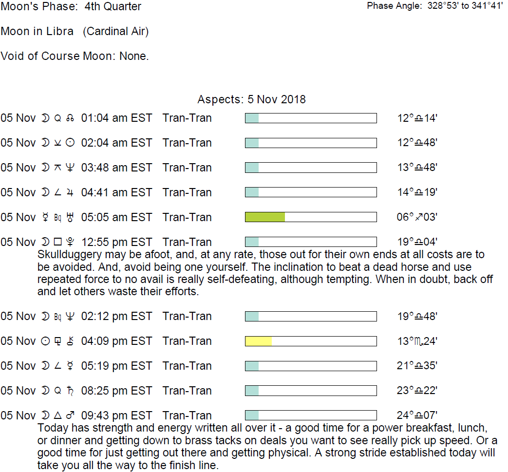 **Conjunctions to Select Fixed Stars on November 5, 2018.**