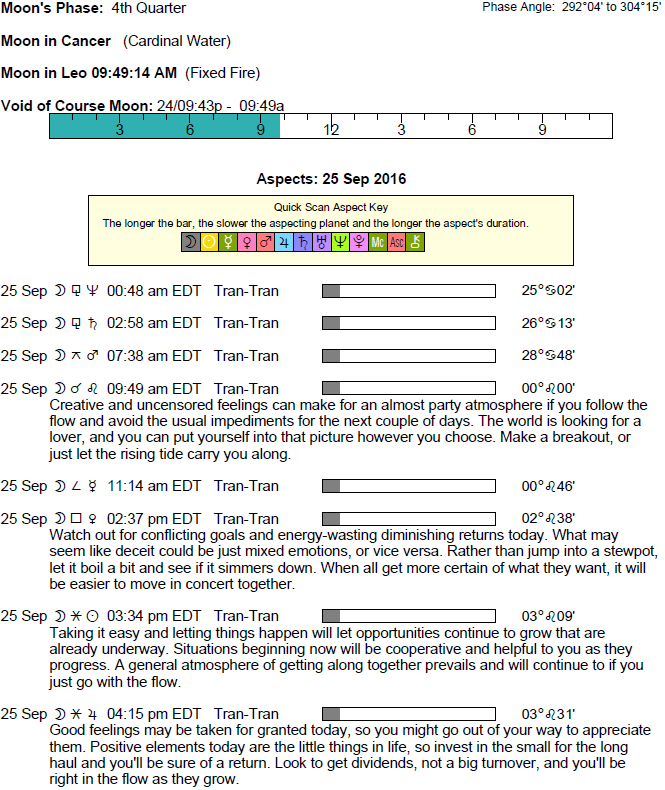 - The Moon is in Leo from 9:48 AM forward (until Tuesday, September 27th, at 5:42 PM).