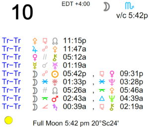 The Moon is in Scorpio. The Moon is void from 5:42 PM forward (until tomorrow at 12:59 PM tomorrow). The Moon is waxing and in its Waxing Gibbous phase until 5:42 PM, after … [Read more...]