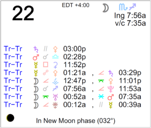 The Moon is in Scorpio until 7:56 AM, after which the Moon is in Sagittarius. The Moon is void from 7:35 AM to 7:56 AM. The Moon is waxing and in its New phase. The New Moon … [Read more...]