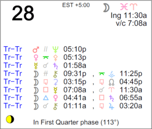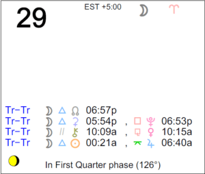 The Moon is in Aries until 3:38 PM, after which the Moon is in Taurus. The Moon is void from 1:37 PM to 3:38 PM. The Moon is waxing and in its First Quarter phase until 4:27 AM, after … [Read more...]