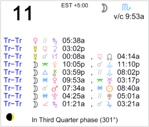 The Moon is in Scorpio. The Moon is void from 9:53 AM forward (until tomorrow at 2:04 AM). The Moon is waning and in its Last Quarter phase. The Last Quarter Moon occurred on the 8th and the New … [Read more...]