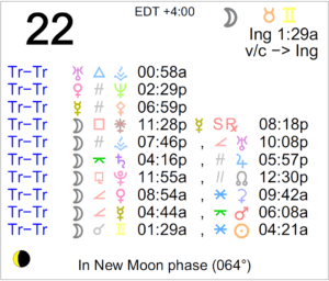 The Moon is in Gemini. The Moon is void from 11:52 PM forward (until tomorrow at 4.52 AM, when the Moon enters Cancer). The Moon is waxing and in its Waxing Crescent … [Read more...]