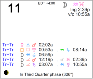 The Moon is in Aquarius until 2:39 PM, after which the Moon is in Pisces. The Moon is void from 10:55 AM to 2:39 PM. The Moon is waning and in its Last Quarter phase. The … [Read more...]