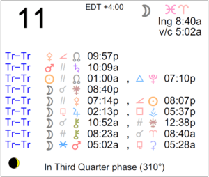 The Moon is in Pisces until 8:40 AM, after which the Moon is in Aries. The Moon is void from 5:02 AM to 8:40 AM. The Moon is waning and in its Last Quarter phase until 8:07 … [Read more...]