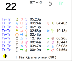 The Moon is in Virgo. The Moon is waxing and in its First Quarter phase. The First Quarter Moon occurred yesterday and a Full Moon will occur on the 29th. Mars is in its … [Read more...]