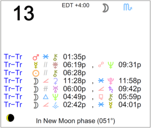 Today's Moon: The Moon is in Scorpio. The Moon is waxing and in its Waxing Crescent phase. We are in between the New Moon (which occurred on the 9th) and the First Quarter … [Read more...]