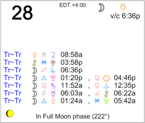 Today's Moon: The Moon is in Taurus. The Moon is void from 6:36 PM forward (until tomorrow at 9:25 AM). The Moon is waning and in its Full phase until 4:46 PM, after which the … [Read more...]