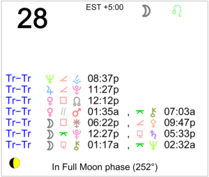 Today's Moon: The Moon is in Leo. The Moon is waning and in its Waning Gibbous phase. We're in between the Full Moon, which happened on the 23rd in the sign of Gemini, and the … [Read more...]