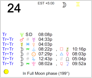 | Pluto | 01° Aquarius 24' 11" |