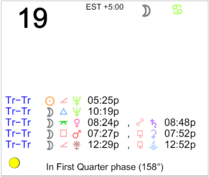 Today's Moon: The Moon is in Cancer. The Moon is waxing and in its Waxing Gibbous phase. We are in between the First Quarter Moon which happened on the 14th, and the Full Moon … [Read more...]