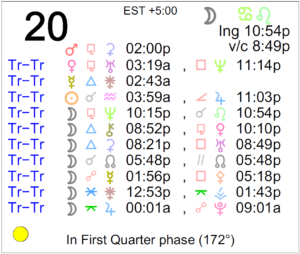 Today's Moon: The Moon is in Gemini. The Moon is waxing and in its First Quater phase until 5:35 PM, after which the Moon is in its Waxing Gibbous phase. We are in between the … [Read more...]