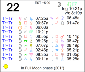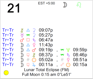 Today's Moon: The Moon is in Leo. The Moon is waxing and in its Waxing Gibbous phase until 12:15 AM, after which the Moon is waning and in its Full phase. The Full Moon (Lunar … [Read more...]