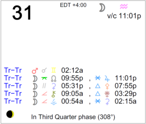 Today's Moon: The Moon is in Aquarius. The Moon is void from 11:01 PM forward (until the Moon enters Pisces tomorrow). The Moon is waning and in its Third Quarter phase. … [Read more...]