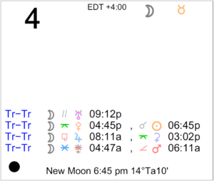 Today's Moon: The Moon is in Taurus. The Moon is waning and in its Waning Crescent phase until 6:45 PM, after which the Moon is waxing and in its New phase. The New Moon occurs today at … [Read more...]