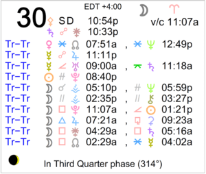 Today's Moon: The Moon is in Aries. The Moon is void from 11:07 AM forward (until tomorrow at 12:42 AM when the Moon enters Taurus). The Moon is waning and is in its Last … [Read more...]