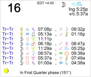 Today's Moon: The Moon is in Leo. The Moon is waxing and in its Waxing Crescent phase until 9:12 PM, after which the Moon is in its First Quarter phase. The First Quarter Moon occurs today … [Read more...]