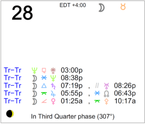 Today's Moon: The Moon is in Taurus. The Moon is waning and in its Last Quarter phase. We are in between the Third Quarter Moon which occurred on the 25th, and the New Moon … [Read more...]