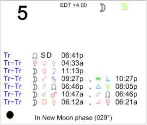 Today's Moon: The Moon is in Cancer. The Moon is waxing and in its New phase. The New Moon occurred on the 3rd in the sign of Gemini. The First Quarter Moon will happen on the … [Read more...]