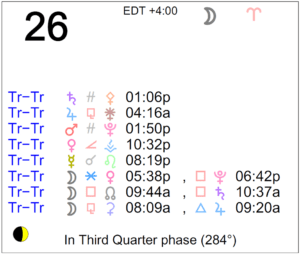 Today's Moon: The Moon is in Aries. The Moon is waning and in its Last Quarter Moon phase. The Third Quarter Moon occurred yesterday. Retrogrades: Jupiter, Saturn, … [Read more...]
