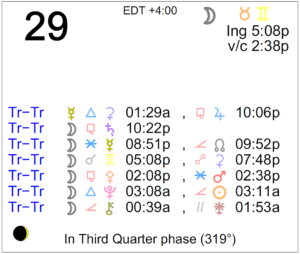 Today's Moon: The Moon is in Taurus until 5:08 PM, after which the Moon transits Gemini. The void Moon occurs from 2:38 PM to 5:08 PM. The Moon is waning and in its Last … [Read more...]