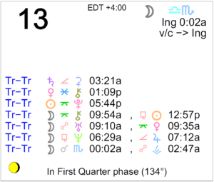 Today's Moon: The Moon is in Libra. The Moon is void from 11:15 AM forward (until tomorrow when the Moon enters Scorpio). The Moon is waxing and in its First Quarter phase. … [Read more...]