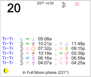 Today's Moon: The Moon is in Pisces. The Moon is waning and in its Full phase until 7:32 PM EDT, after which the Moon is in its Waning Gibbous phase. The Full Moon (a Lunar … [Read more...]